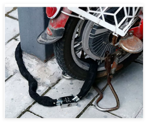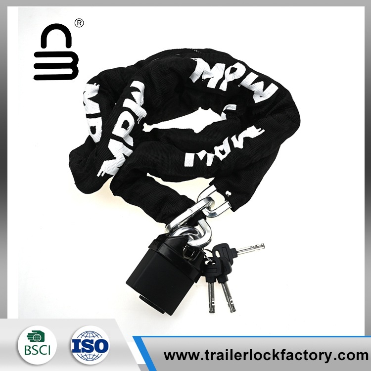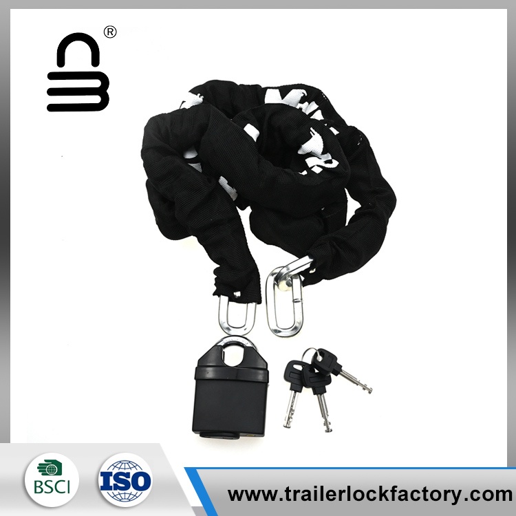 Για να αποφευχθούν οι γρατζουνιές και να ενισχύσουν τη μακροζωία, η κλειδαριά της αλυσίδας ποδηλάτων καλύπτεται με ένα σκληρό, ανθεκτικό σε φθορά μανίκι υφάσματος. Για πρόσθετη ασφάλεια, η κλειδαριά της αλυσίδας ποδηλάτων είναι εξοπλισμένο με μηχανισμό κλειδώματος σχήματος U, γνωστός και ως άγκιστρα U-Lock, ο οποίος προσφέρει μια αξιόπιστη και ασφαλή μέθοδο στερέωσης.